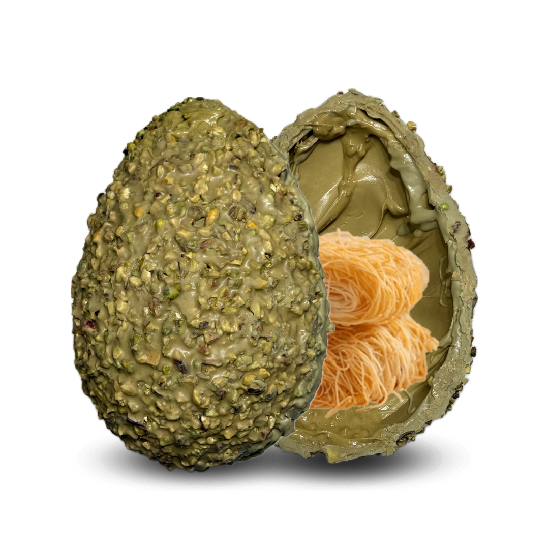 Quest’uovo da circa 1kg è un’esplosione di sapore vero e proprio. Realizzato con la miglior qualità di pistacchio e arricchito dalla crema spalmabile al pistacchio con pasta kataifi all’interno. È una vera esperienza di degustazione.