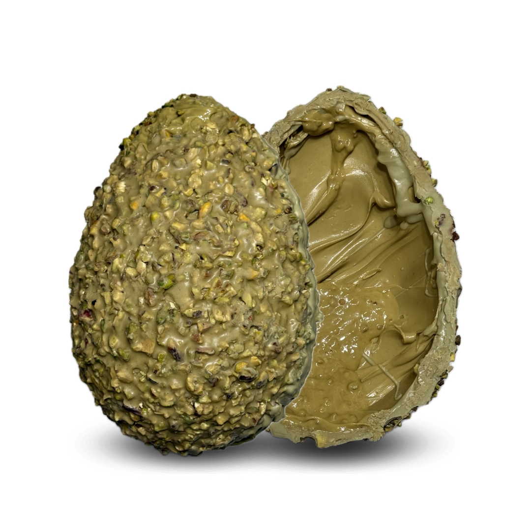 Quest’uovo da circa 1kg è un’esplosione di sapore vero e proprio. Realizzato con la miglior qualità di pistacchio in commercio e arricchito dalla crema spalmabile al pistacchio all’interno. È una vera esperienza di degustazione.